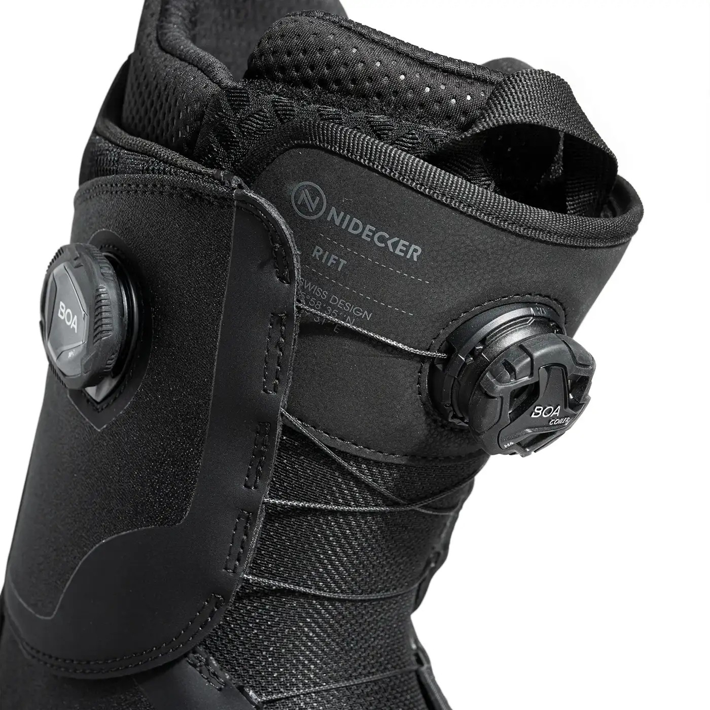 Сноубордические ботинки Nidecker Rift - идеальный выбор для креативных райдеров, ценящих свободу движений в парке и уверенность на трассе. Их жёсткость чуть-чуть ниже среднего, двухслойная внешняя оболочка обеспечивают отличную отзывчивость и игровой характер, а дизайн в стиле кроссовок делает их лёгкими и современными. Система двойной шнуровки BOA®, амортизирующая вставка OC-Kush и термоформуемый внутренний ботинок Silver гарантируют точную посадку и комфорт на протяжении всего дня катания.
