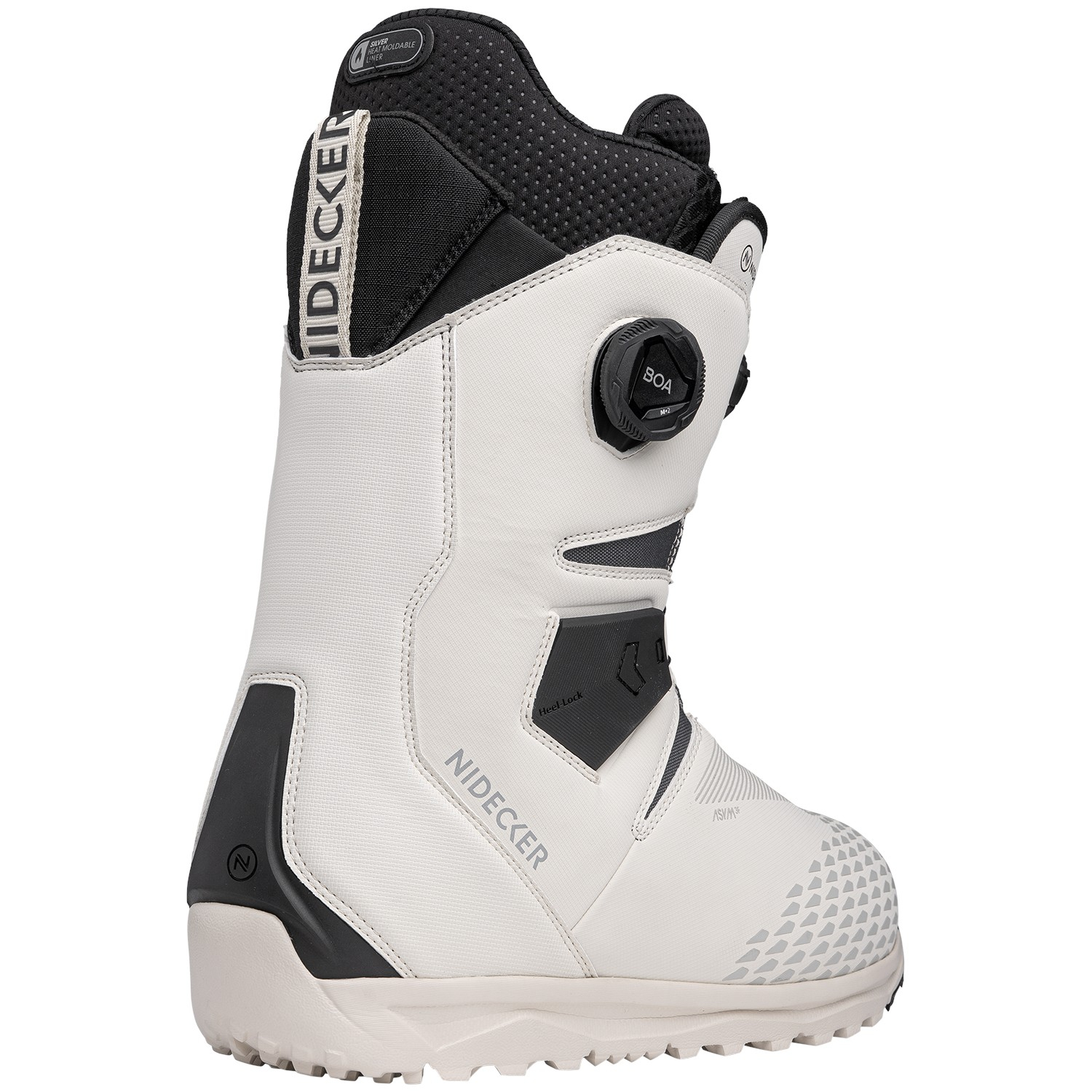 • Dual-Dial BOA® (Система шнуровки обеспечивает быстрое и простое затягивание ботинок с помощью двух противоударных дисков H4 Coiler. Она позволяет независимо регулировать верхнюю и нижнюю части стопы, что гарантирует индивидуальную подгонку. Это дает возможность выбрать между максимальной передачей энергии и более свободным, серфинг-стилем поворотов).