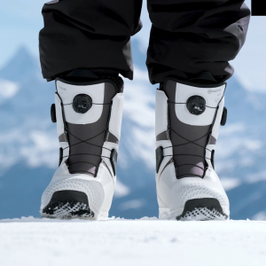 Жесткость ботинок. Чем более жёсткими являются ботинки на сгиб, тем больше контроля у райдера над доской. Такие ботинки быстрее и точнее передают усилия, что позволяет сноуборду лучше реагировать на движения. Это особенно важно для тех, кто катается на высоких скоростях, по ледяным склонам или сложному рельефу. Поэтому жёсткие ботинки часто выбирают любители карвинга и азартного фрирайда. В то же время, мягкие ботинки популярны среди тех, кто катается в парке и занимается джиббингом, так как их гибкость облегчает выполнение трюков — позволяет делать красивые грэбы, прессовать и балансировать на перилах. Мягкие и гибкие ботинки также удобны для новичков, так как прощают некоторые ошибки и обеспечивают комфорт при ходьбе. Однако это не означает, что начинающим райдерам следует ограничиваться лишь мягкими моделями. Наоборот, лучше остановиться на вариантах средней жёсткости, чтобы учесть перспективу дальнейшего роста в катании.
