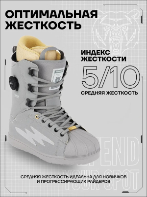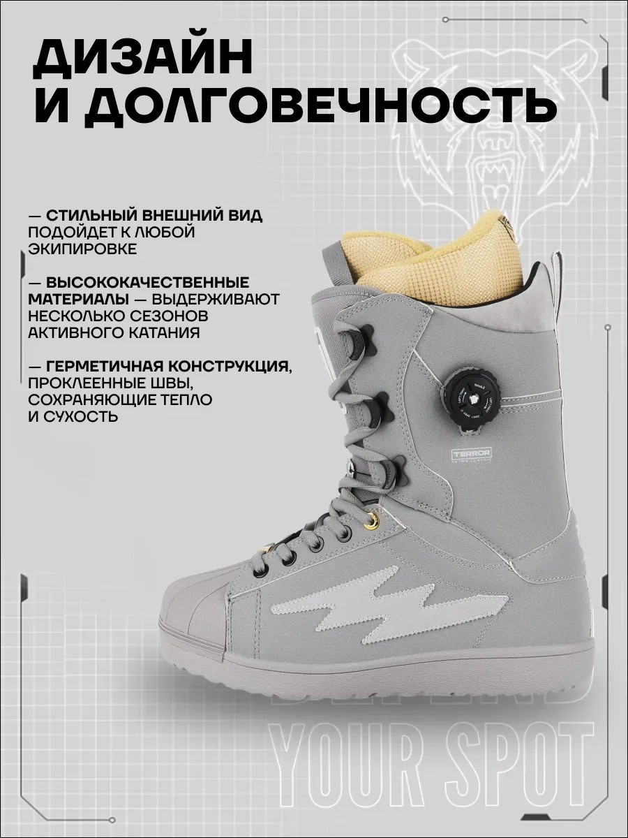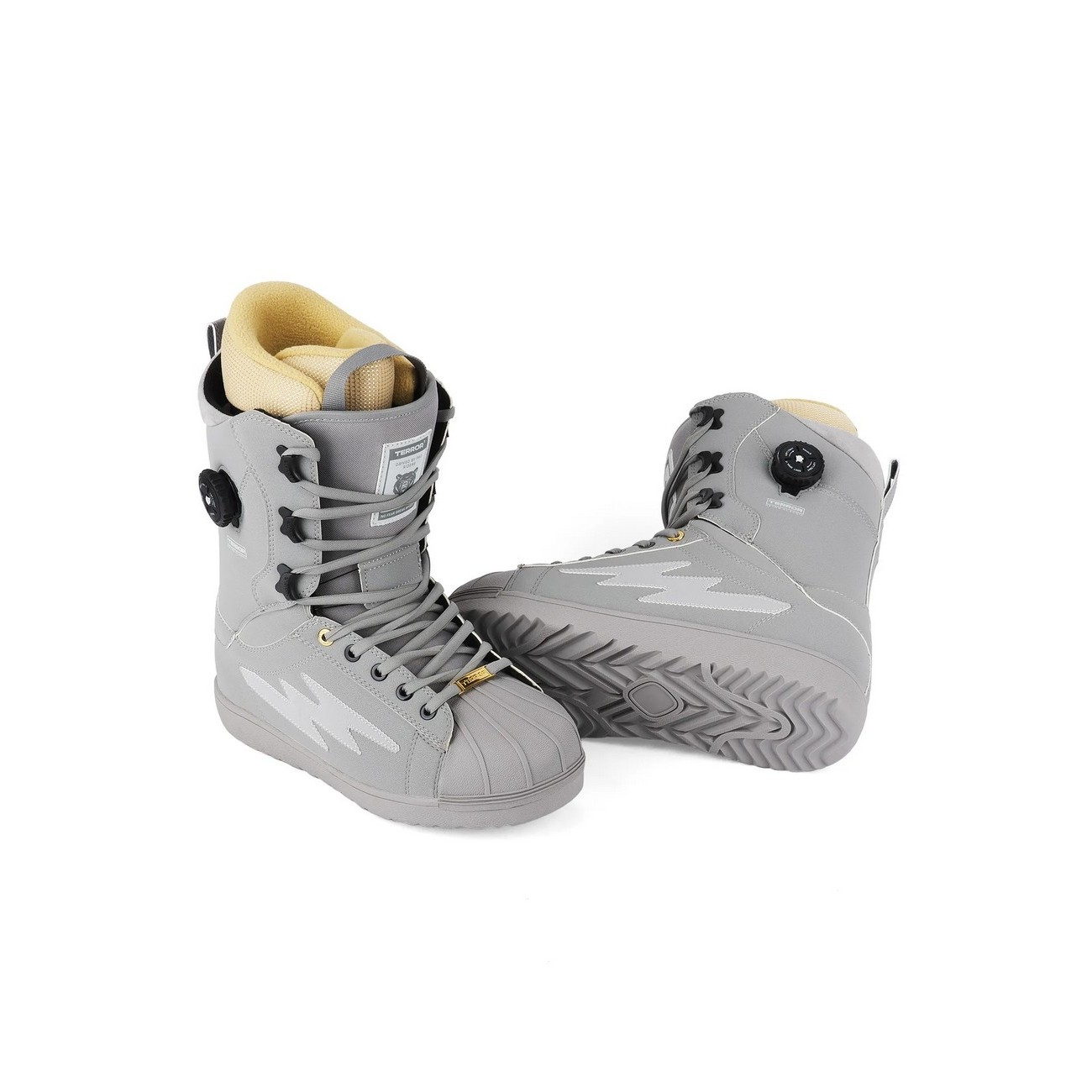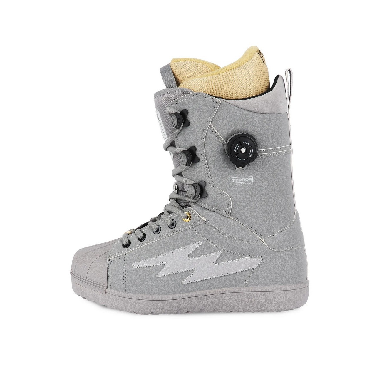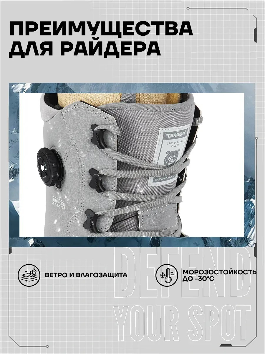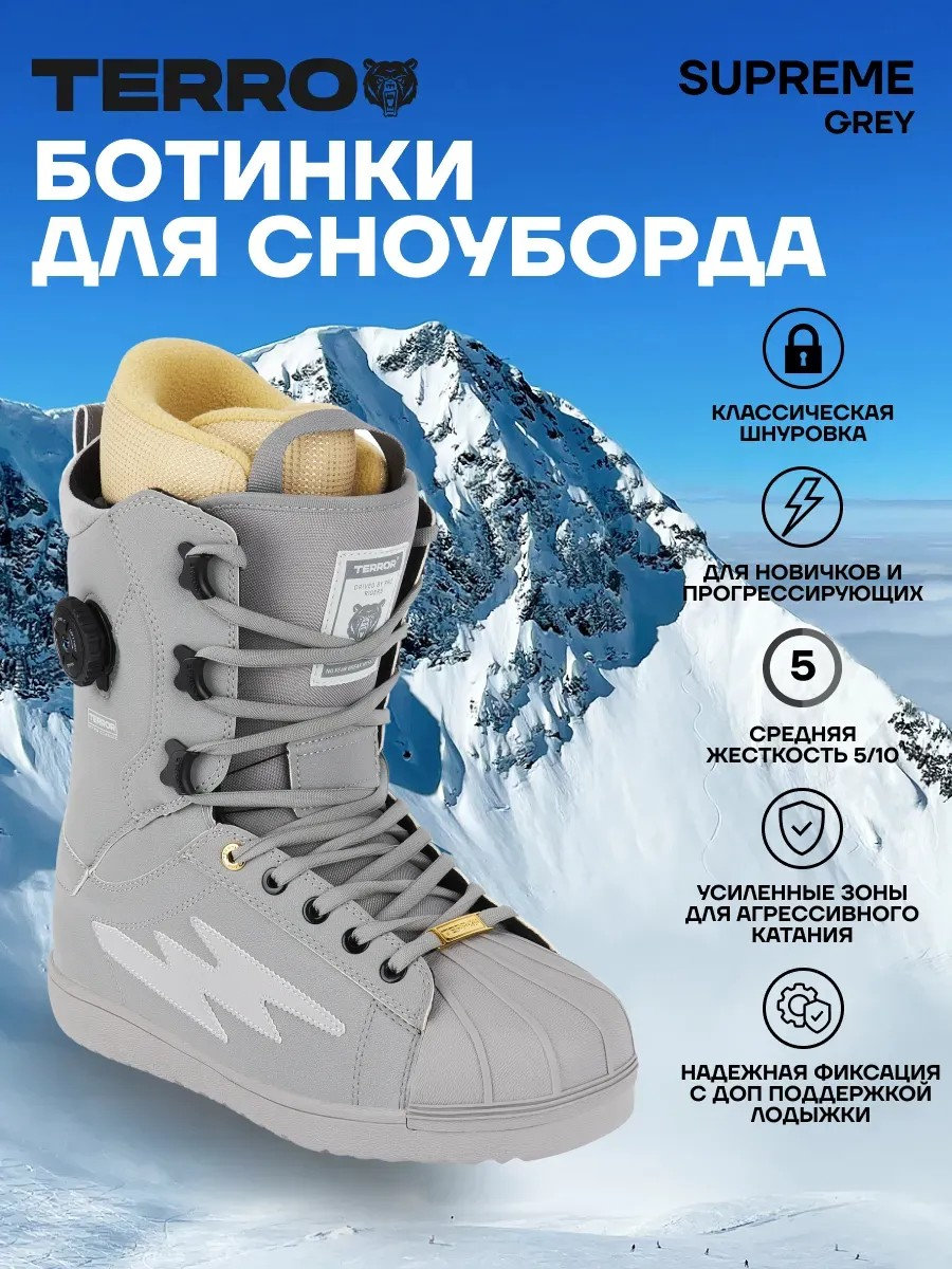 Ботинки Terror Thunder Grey (2026) - это гармония проверенного временем дизайна и передовых технологий для уверенного катания. Средняя жёсткость 5/10 обеспечивает комфорт без ущерба для контроля. Комбинированная система фиксации - классическая шнуровка плюс быстрая система NXHALE - позволяет точно настроить посадку, особенно в области пятки и лодыжки. Формируемый внутренник адаптируется под форму стопы, а демпфирующая подошва и амортизирующая стелька смягчают нагрузку даже при длительных спусках. Идеальный выбор для классического райдера, ценящего надёжность и комфорт.