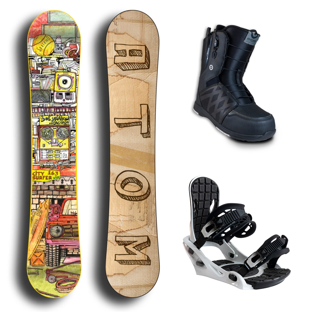 Мужской комплект, включающий в себя сноуборд Atom City Surfer (2023), ботинки Atom Team Black/White (2022) и крепления Atom Team LTD White/Black Fade (2023). Приятного катания!