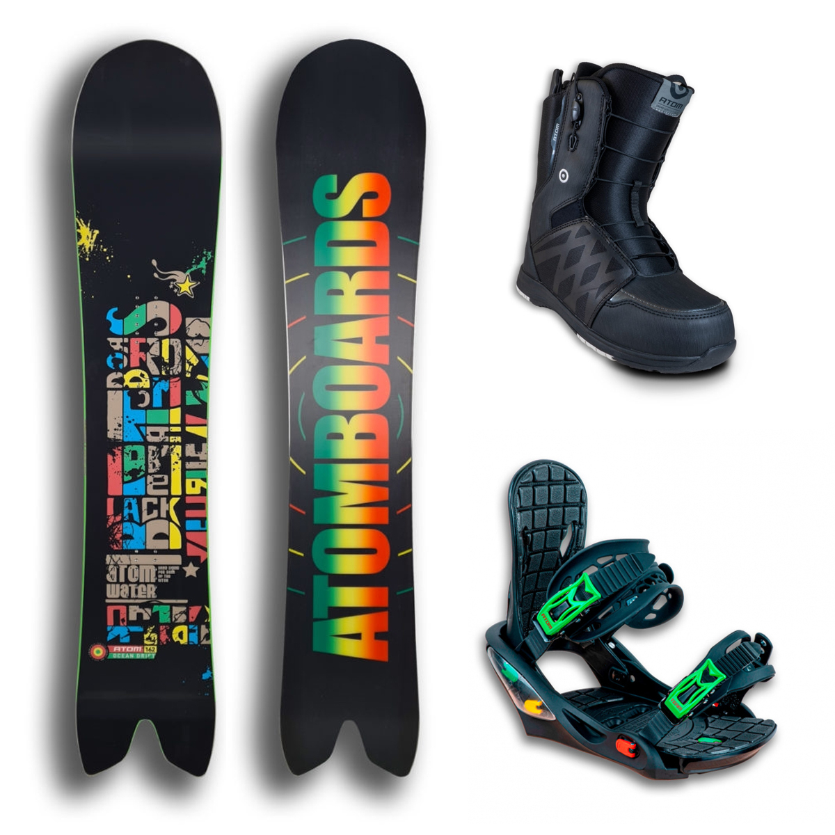 Мужской комплект, включающий в себя сноуборд Atom Ocean Drift (2023), ботинки Atom Team Black/White (2025) и крепления Atom Team Black/Rasta (2021). Приятного катания!