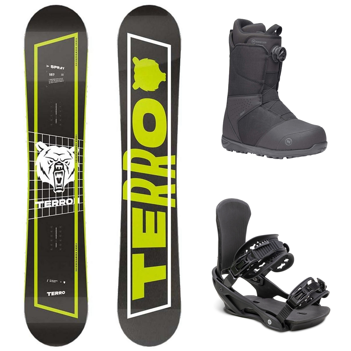Мужской комплект, включающий в себя сноуборд Terro Spray (2025), ботинки Nidecker Sierra Black (2024) и крепления Atom Ion Matt Black (2025). Приятного катания!