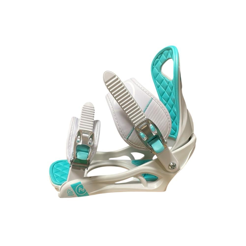 Женские крепления Nidecker Ela помогут девушке-новичку освоиться на склоне и получить начальные технические навыки. База крепов выполнена из прочного нейлона с 33% добавлением стекловолокна. Хайбэк скошенной асимметричной формы наилучшим образом передает команды на доску, его угол наклона легко настраивается. Амортизационные накладки на пятке, газ-педали и хайбэке снижают вибрации при катании. Гибкий верхний стреп комфортно облегает ботинок в области лодыжки, нижний фиксируется поверх носка или на мыске. Бакли изготовлены из алюминия.