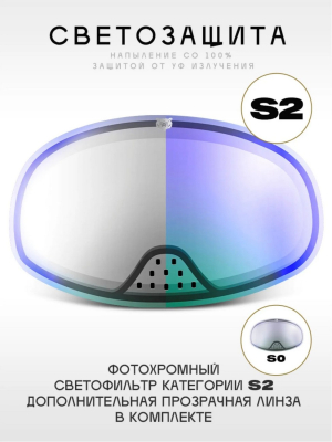 • 2 двойные магнитные линзы в комплекте с разной светопропускаемостью (серебристая с VLT 24%, радужная с VLT 74%).