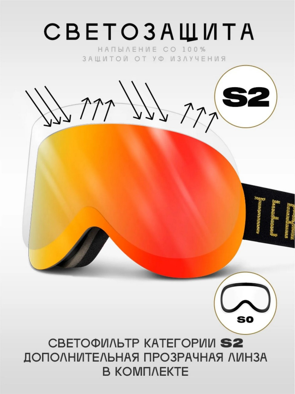 • 2 двойные магнитные линзы в комплекте с разной светопропускаемостью (золотистая S2, прозрачная S0).