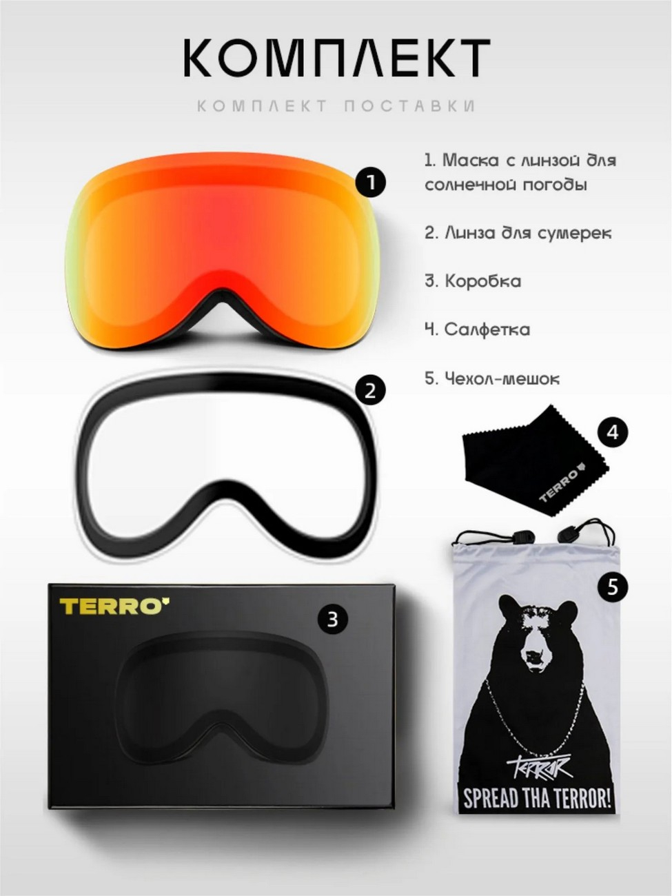 Маска Terro Radial - это сочетание передовых технологий и эргономичного дизайна для максимального контроля на склоне. Благодаря сферической магнитной линзе с широким углом обзора вы получаете чёткое периферийное зрение и мгновенную реакцию на изменения рельефа. Система быстрой замены позволяет за секунды поменять линзу в зависимости от погоды - в комплекте идут две двойные линзы: для гор и для пасмурных условий (золотистая и прозрачная). Эффективная вентиляция, антибликовое покрытие и 100% защита от УФ-излучения обеспечивают ясность зрения в любых условиях. Мягкая подкладка из двойного поролона и микрофибры, регулируемый ремень с силиконовой полосой и совместимость с очками и шлемами Terro делают маску комфортной и надёжной как в горнолыжном парке, так и на сложных естественных спусках.