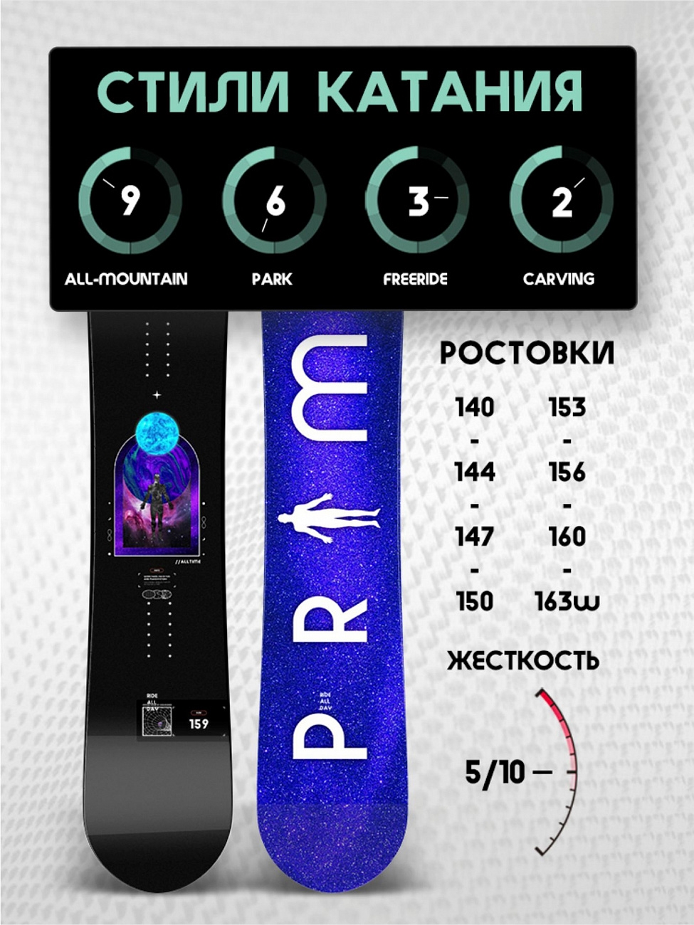 Важный параметр, который характеризует назначение и того или иного снаряжения, а также определяет ваш стиль и ощущения при катании на различных снежных склонах.