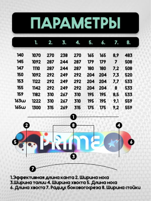 Геометрия определяется рядом характеристик: Ростовка - это длина доски от ее носа до хвоста. Как правило, соотношение веса райдера и рекомендуемой ростовки указано в таблицах описания моделей. Ширина носа и хвоста - это расстояние между самыми удаленными друг от друга точками, носа и хвоста, соответственно. Обычно эти два показателя определяют симметрию или асимметрию сноуборда. Ширина талии - это расстояния между ближайшими точками боковых поверхностей доски. Эффективная длина канта - это та часть канта доски, которая касается склона при движении и поворотах. Радиус бокового выреза - это радиус воображаемой окружности, часть которой проходит по боковой части канта доски.