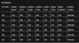 Размеры (см): 147, 149, 153, 155, 160, 163
