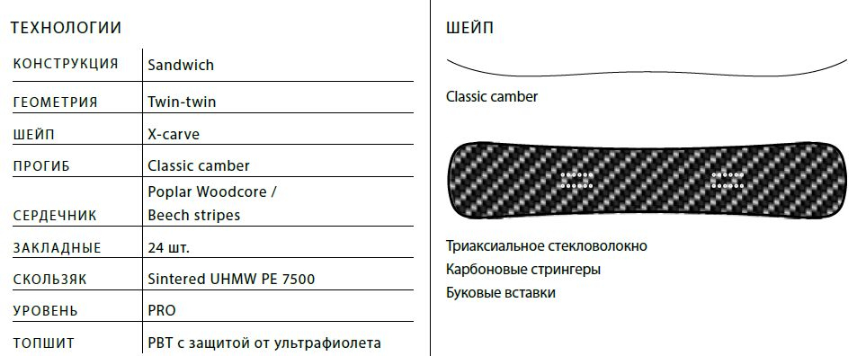 Вельвет, скорость, острые как бритва повороты... Все эти слова идеально описывают X-Carve - самую жёсткую и агрессивную модель новой коллекции, созданную для бордеркросса и фристайл-карвинга. За её минималистичным дизайном скрывается мощная «начинка»: сердечник из тополя с буковыми вставками и крестообразными карбоновыми стрингерами, усиленный триаксиальным стекловолокном для точного отклика и стабильности. Поверхность защищена прочным топшитом из PBT-пластика, а спечённый скользящий слой из высокомолекулярного полиэтилена обеспечивает высокую скорость и износостойкость. Классический прогиб Camber добавляет доске отзывчивости и контроля даже на предельных скоростях - всё, что нужно для уверенного и резкого карвинга.