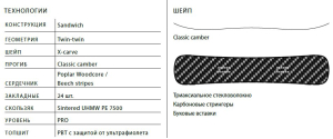 QuadAxial (четырехслойная). Стеклоткань размещена под углами 45/0/90/45, что обеспечивает доске максимальную жесткость и оптимальную передачу веса на кант. Этот материал преимущественно используется в сноубордах, предназначенных для жестких ботинок, и очень редко встречается в моделях для обычной обуви.