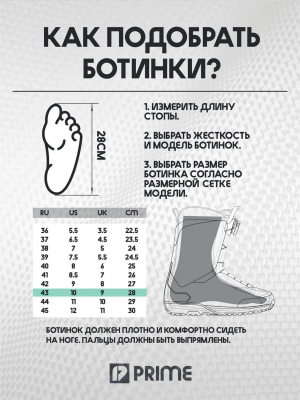 Жесткость ботинок. Чем более жёсткими являются ботинки на сгиб, тем больше контроля у райдера над доской. Такие ботинки быстрее и точнее передают усилия, что позволяет сноуборду лучше реагировать на движения. Это особенно важно для тех, кто катается на высоких скоростях, по ледяным склонам или сложному рельефу. Поэтому жёсткие ботинки часто выбирают любители карвинга и азартного фрирайда. В то же время, мягкие ботинки популярны среди тех, кто катается в парке и занимается джиббингом, так как их гибкость облегчает выполнение трюков — позволяет делать красивые грэбы, прессовать и балансировать на перилах. Мягкие и гибкие ботинки также удобны для новичков, так как прощают некоторые ошибки и обеспечивают комфорт при ходьбе. Однако это не означает, что начинающим райдерам следует ограничиваться лишь мягкими моделями. Наоборот, лучше остановиться на вариантах средней жёсткости, чтобы учесть перспективу дальнейшего роста в катании.