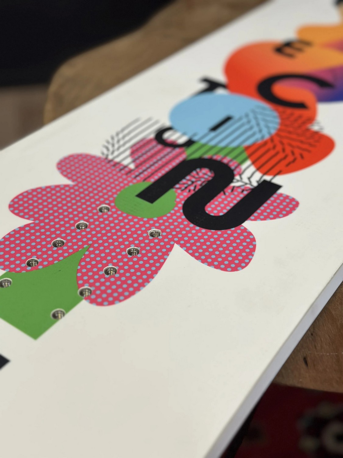 Верхняя покрытие или топшит - это та часть доски, которую мы видим в первую очередь, смотря на сноуборд. На топшит наносятся яркие принты, нередко разработанные с участием известных мировых дизайнеров. В основном эта часть доски выполнена из пластика, который бывает прозрачным, матовым или глянцевым. Но отдельные производители, например Arbor или Jones, делают топшит из натуральной древесины с пропиткой из био-пластика.