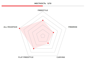 • Жёсткость: 5/10 (универсальная, подходит новичкам и прогрессирующим райдерам)