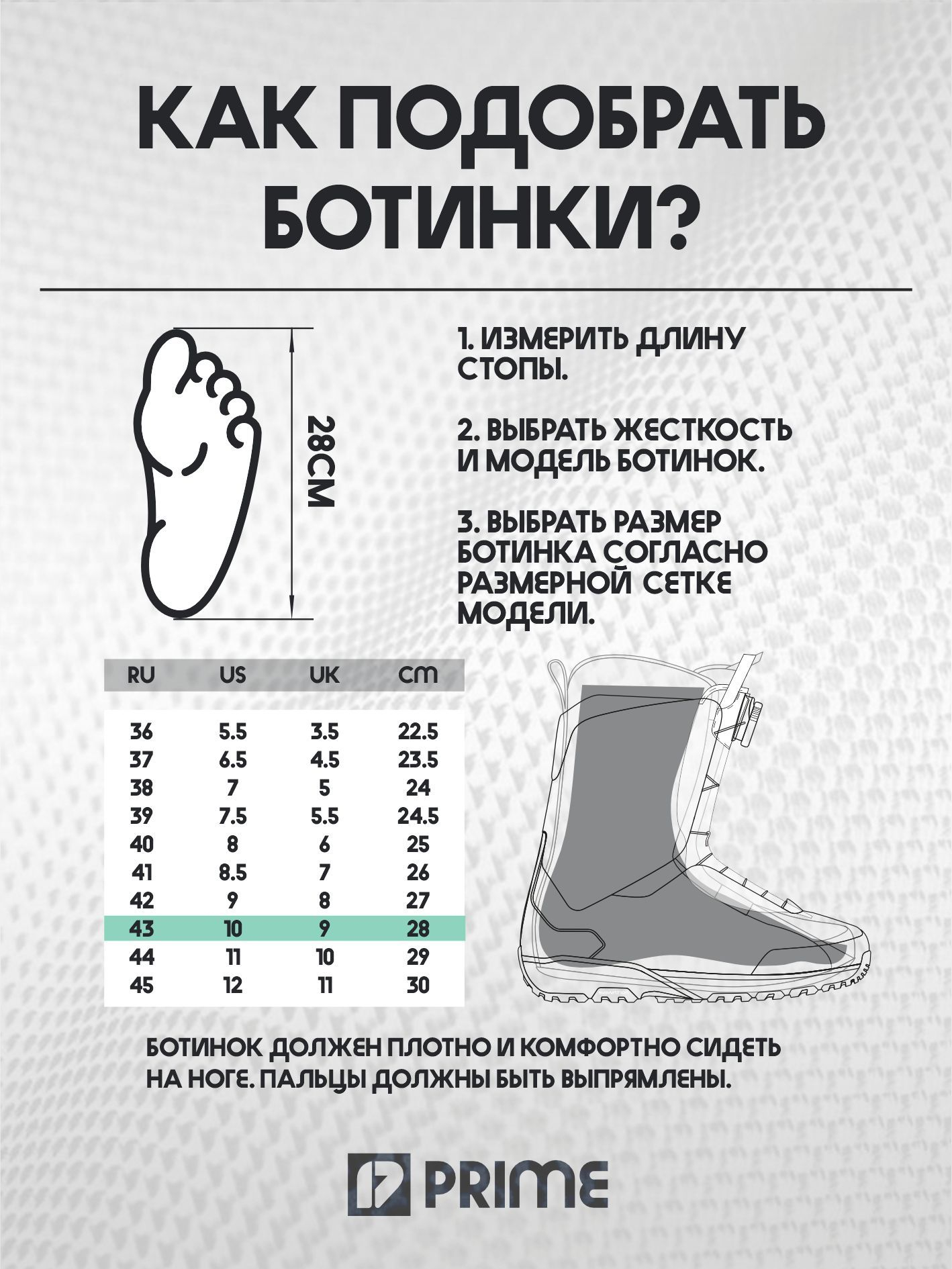 Классическая десятибальная шкала, по которой вы легко сможете определить жесткость конкретной доски. Мягкие доски входят в диапазон от 1 до 3, золотой серединой являются модели с уровнем от 4 до 6, жесткие борды начинаются с 7 и выше.