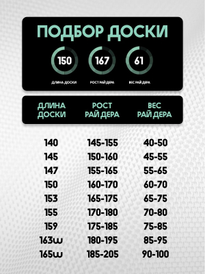 • Жёсткость: 5/10 (универсальная, подходит новичкам и прогрессирующим райдерам)