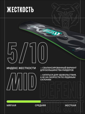 • Жёсткость: 5/10 - сбалансированная для фристайла и всестороннего катания