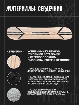 Каждый из этих материалов имеет свои уникальные характеристики, которые влияют на поведение сноуборда, позволяя производителям разрабатывать индивидуальные решения для разных условий катания и предпочтений райдеров.